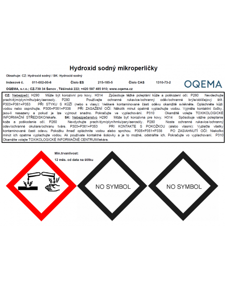 Hydroxid sodný mikroperličky, pytel 25 kg