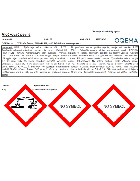 Vločkující přípravek na bázi síranu hlinitého je určen pro vyvločkování jemných částeček nečistot tvořící neodfiltrovatelnou suspenzi – zákal vody. Umožní tak vysrážení části jemných nečistot do větších vloček, jejich odfiltrování nebo usazení a následné odsátí bazénovým vysavačem.